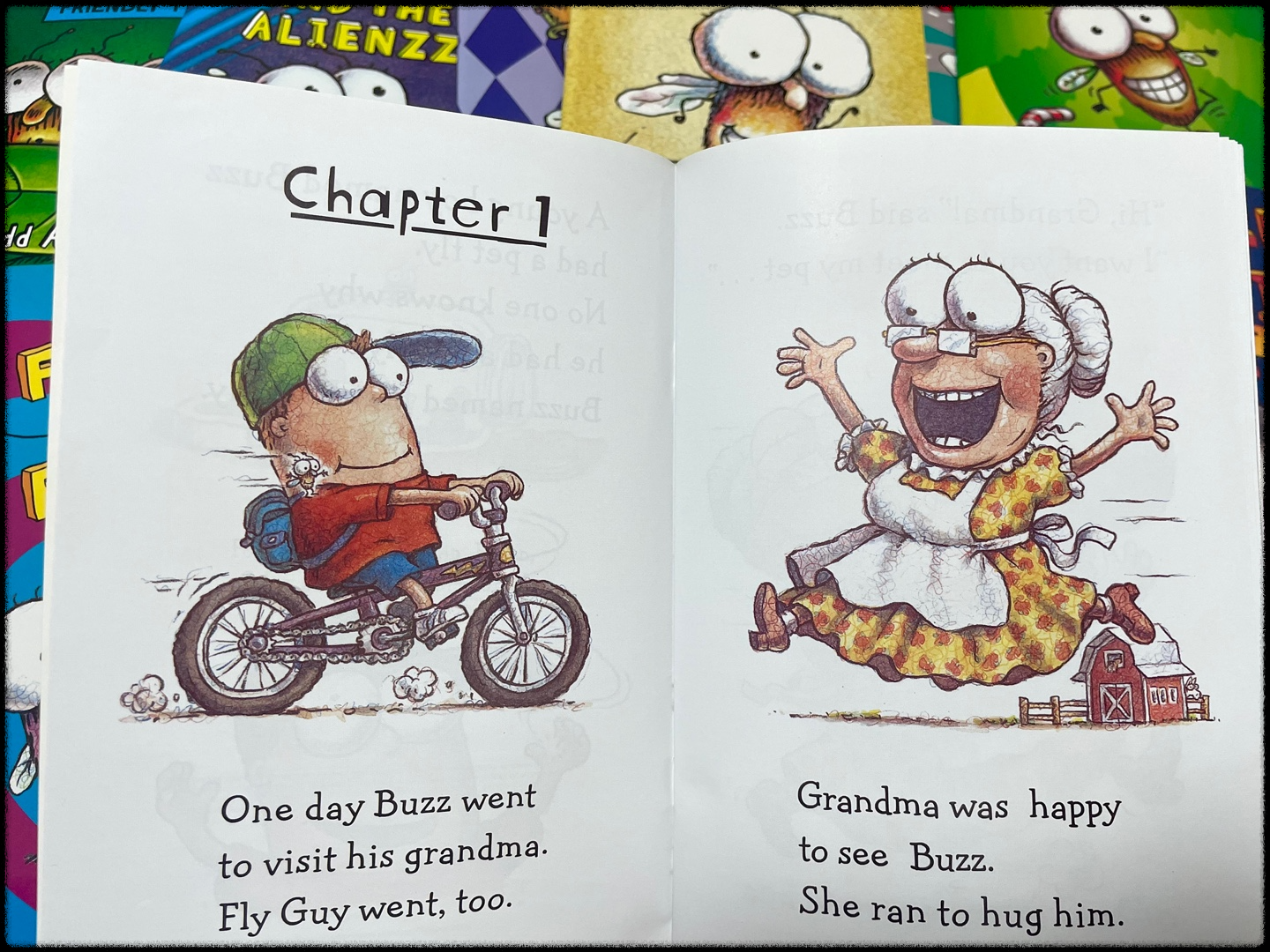 영어책은 크게 4가지로 나눌 수 있어요. 일정 수준의 정해진 단어를 가지고 만든 리더스북, 리더스북에서 단행본으로 넘어가기 전 이야기를 몇 개의 장으로 나눈 챕터북, 단행본, 그리고 픽처북이라고도 불리는 그림책이 있다고 생각하시면 됩니다. 순서로 따지면 리더스북을 시작으로 챕터북을 거쳐 단행본에 이르는 것이고, 그림책은 시작부터 끝까지 사이사이에 함께 읽어 나갈 수 있고요. <엘리펀트 앤 피기>와 <Fly guy>는 리더스북에 해당되는 얇은 책입니다 :)