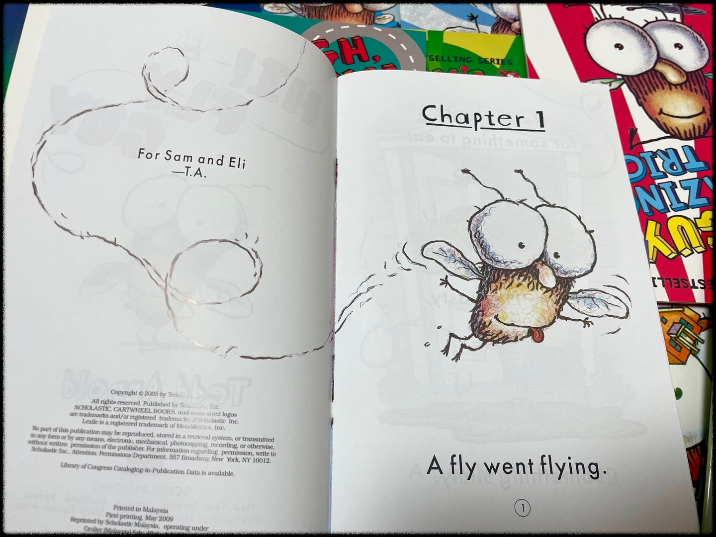 영어책은 크게 4가지로 나눌 수 있어요. 일정 수준의 정해진 단어를 가지고 만든 리더스북, 리더스북에서 단행본으로 넘어가기 전 이야기를 몇 개의 장으로 나눈 챕터북, 단행본, 그리고 픽처북이라고도 불리는 그림책이 있다고 생각하시면 됩니다. 순서로 따지면 리더스북을 시작으로 챕터북을 거쳐 단행본에 이르는 것이고, 그림책은 시작부터 끝까지 사이사이에 함께 읽어 나갈 수 있고요. <엘리펀트 앤 피기>와 <Fly guy>는 리더스북에 해당되는 얇은 책입니다 :)