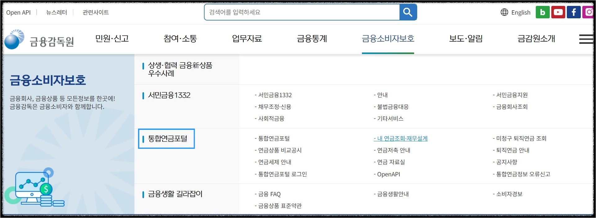 통합연금포털에서 내 연금조회.재무설계를 클릭합니다.
