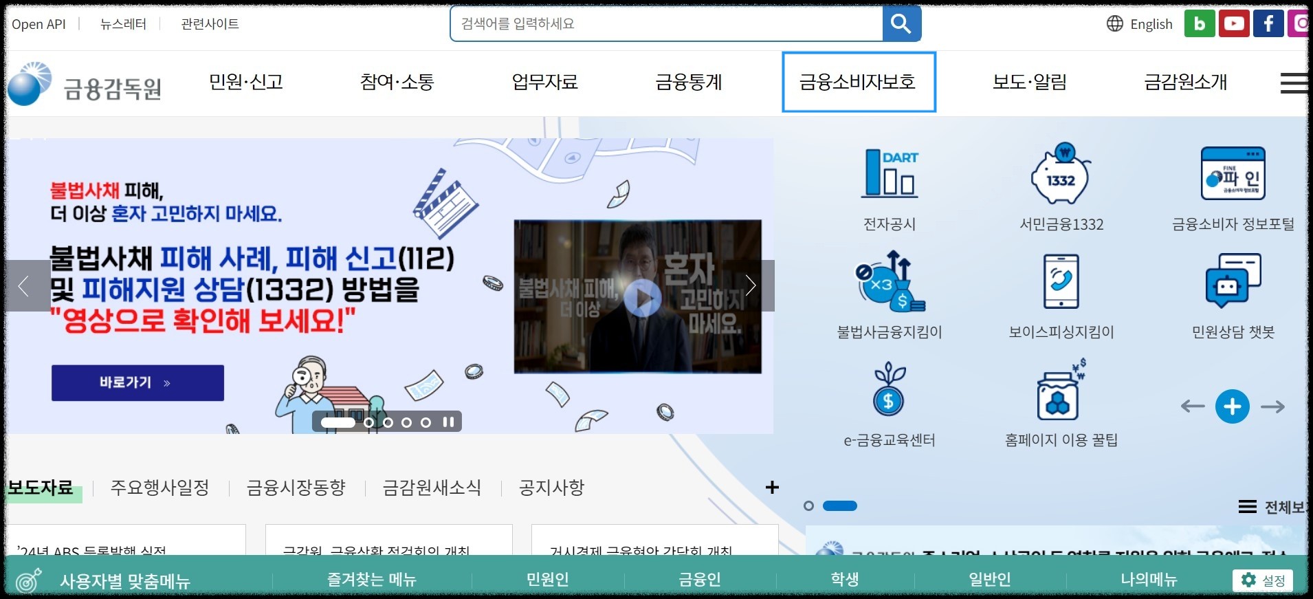상단 메뉴에 금융소비자보호 탭을 클릭합니다.